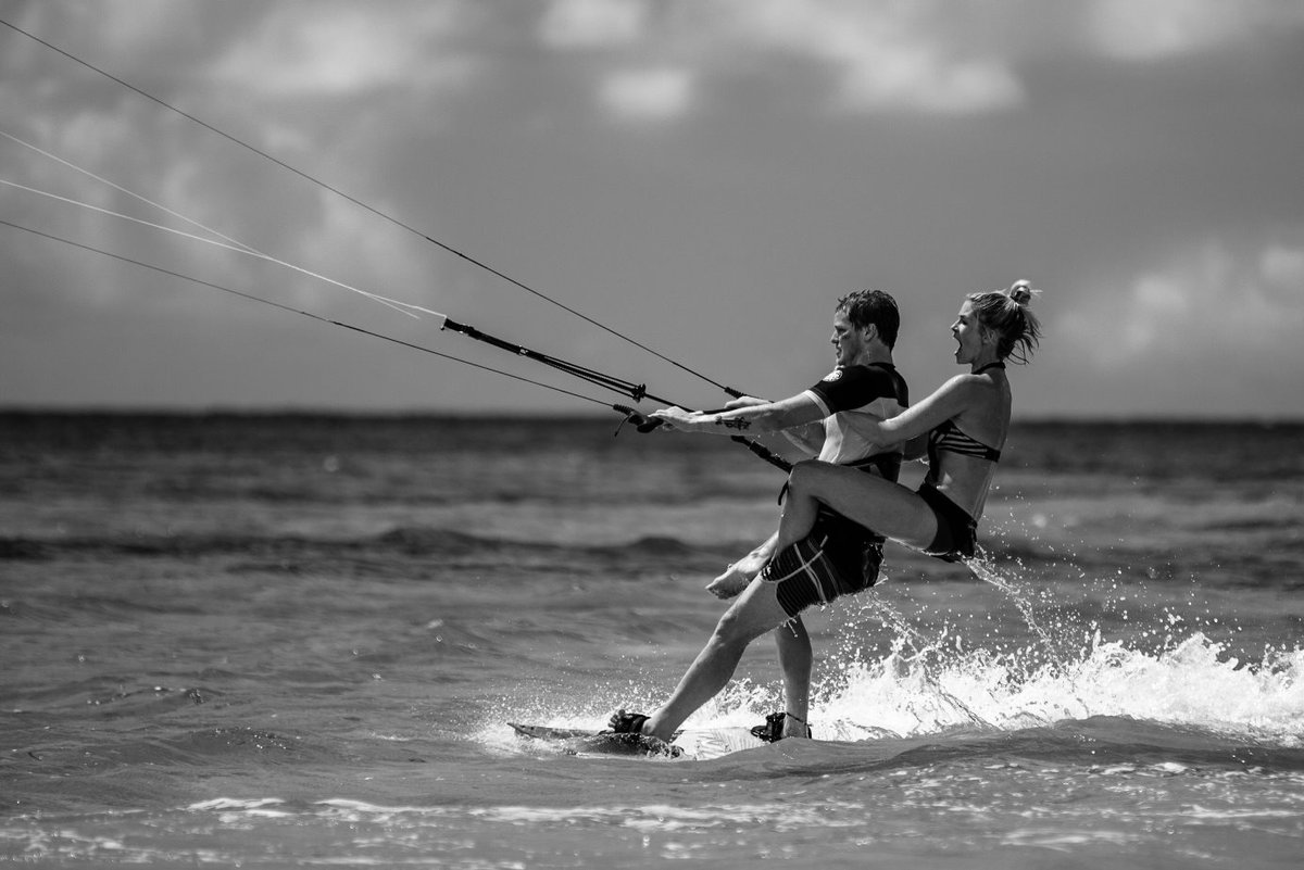 kitesurfing with his wife on his back: