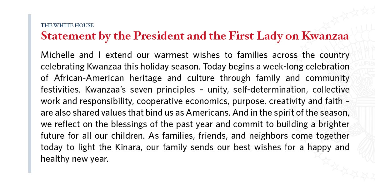 "Michelle and I extend our warmest wishes to families across the country celebrating Kwanzaa" —